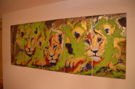 Beim Rundgang im Haus fallen einem die stylischen Kunstwerke auf. Farbenfrohe Gemälde auf Blechplatten, passend zum roten Faden des Hauses, oft mit Löwenmotiven. Hier lebt der Küchenchef seine zweite kreative Ader aus.