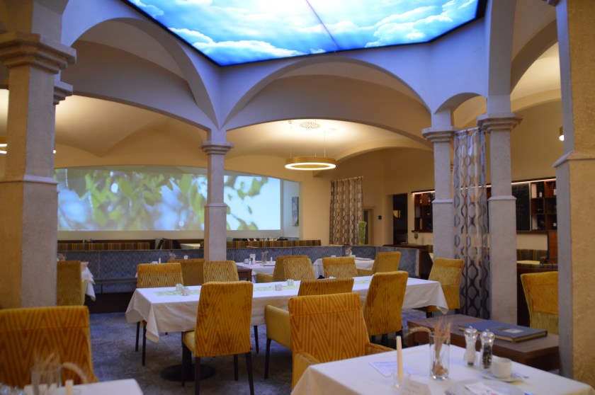 Weil in diesem Speiseraum am Samstag eine Hochzeit gefeiert wurde, wurden alle Hausgäste im Hoteleigenen a la carte Restaurant „Pfandl“ verwöhnt.
