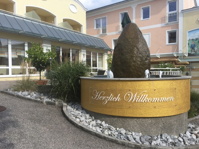 diesmal war meine Anreise nicht so weit (bin ja aus Passau), knapp 70 km. Keine 20 km hinter der Grenze zwischen Bayern und Österreich liegt der Ort Aigen im Mühlkreis und mitten drin am Marktplatz das 4 Sterne Superior Genuss- und Wellnesshotel Almesberger.