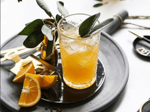 Zum Schluss noch mit der Mandarinen Limonade auffüllen. Garniert wird der Drink mit etwas Zimtpulver und Salbei.