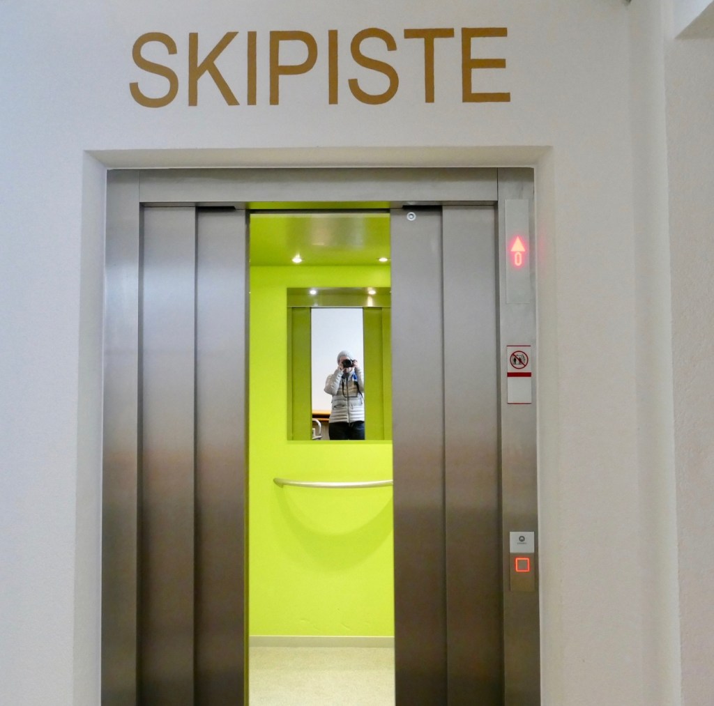 Da wir ja mitten im Ötztaler Winterwonderland sind, haben wir natürlich gleich das schöne Wetter ausgenutzt und uns draußen umgeschaut. Im Skikeller stehen beheizbare Spinde zur Verfügung. Und es gibt sogar einen Ski-Aufzug der einen direkt zur Skipiste bringt, frei nach dem Motto „Ski anschnallen, fertig, los!“