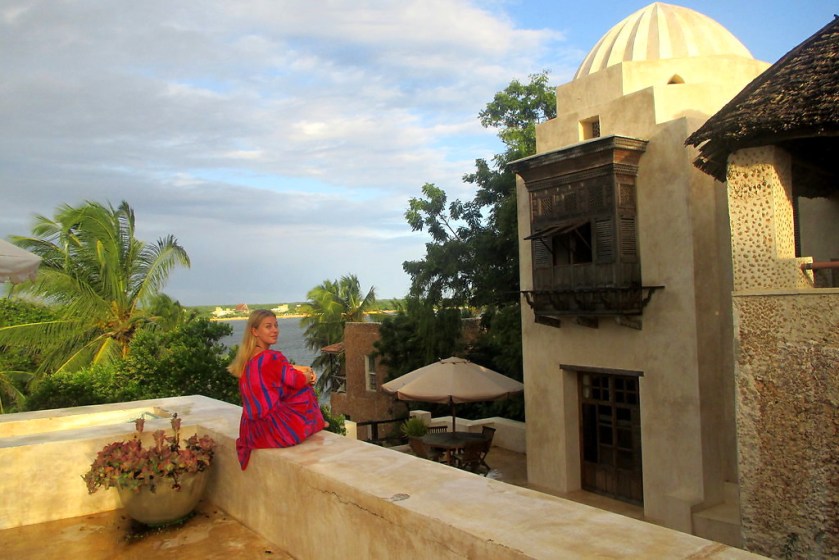 Ich öffne die braunen schweren Fensterklappen und blicke durch mein Suaheli-Turmfenster hinunter auf den grünen Garten der Anlage sowie auf das Meer, das ich am Horizont erspähe. Eine Meeresbrise lässt meine Haare im Wind wehen und in der Sonne leuchten. Ein wenig fühle ich mich wie Rapunzel aus dem Märchen der Gebrüder Grimm. Gerade versuche ich mir das Rapunzel-Märchen bildlich zurück ins Gedächtnis zu rufen als der Muezzin zum Gebet aufruft.