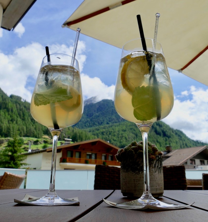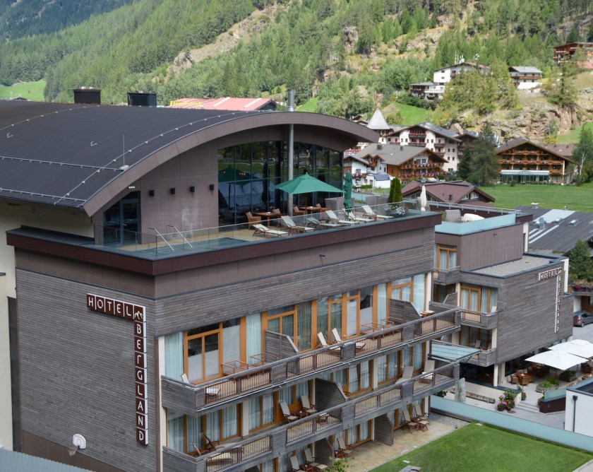 Alltag aus, Entspannung ein. Das klappt wunderbar in diesem herrlichen Designhotel, obwohl es mitten im quirligen Sölden liegt. Auf Anhieb gefällt uns diese Mischung aus moderner Architektur, alpenländischen Ambiente und der Herzlichkeit des gesamten Teams. Unser Auto können wir kostenlos in der Hotelgarage parken und genießen nach dem Einchecken den Begrüßungsdrink auf der Sonnenterrasse.