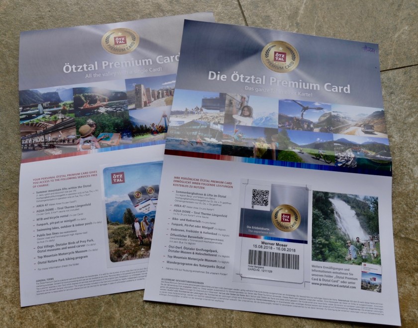 Während der Sommermonate erhält man als Hotelgast kostenlos die „Ötztal Premium Card“ dazu. Damit kann man z.B. kostenlos ein Rad ausleihen (E-Bike mit Aufpreis), die öffentlichen Busse und jede Bergbahn täglich kostenlos nutzen, die Water-Area vom Fun-Park „Area 47″ besuchen oder sich 3-Stunden im Aqua Dome, der Tiroler Therme gönnen – um nur einige Highlights zu nennen. Es lohnt sich also ein Hotel auszuwählen, dass die Ötztal Premium Card beinhaltet. Bei Benutzung aller Bergbahnen ist die maximale Ersparnis 219,50 Euro pro Erwachsener.