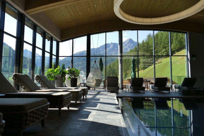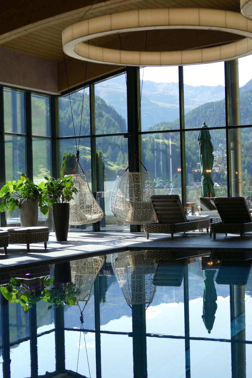 Überraschend anders ist auch, dass die Textilsauna gleich oberhalb des Innenpools positioniert wurde mit Blick auf den Pool. Gefällt mir.