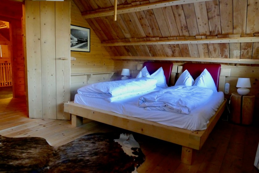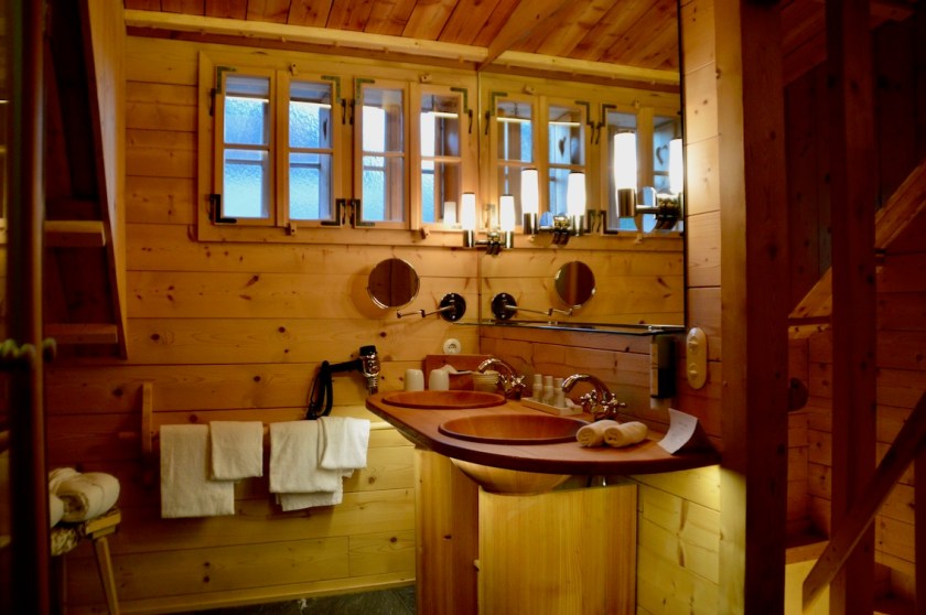 Alles ist liebevoll dekoriert, authentische Alpengastlichkeit ohne dabei kitschig zu wirken. Indirekte Beleuchtung und echte Kerzen, draußen überall Petroleumlampen, einfach schee. Urig die knarrende Holztreppe und die Wandvorsprünge, bei denen man den Kopf einziehen muss. Ein Highlight ist auch der beheizte Außenzuber auf unserer Terrasse, den wir ausgiebig genossen haben.