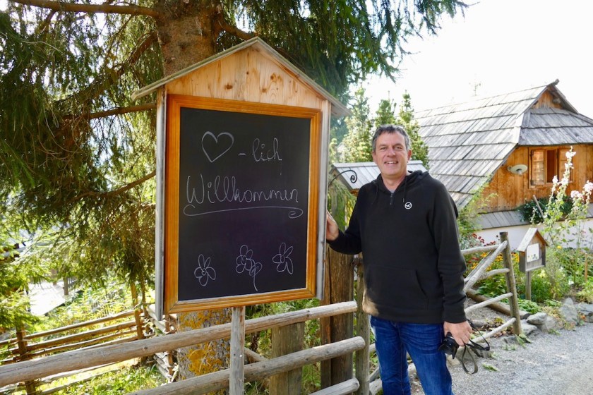 Draußen hängt bereits unser Name neben der Tür und zeigt an, wer hier “daham” ist. Drinnen erwartet uns eine Karte mit der persönlichen Begrüßung, dazu zwei Äpfel und selbstgemachte Kekse. Auch Bergquellwasser und mit Liebe selbstgemachter Kräutersirup steht bereit. Auch eine der ca. 15 Almdorf-Katzen begrüßt uns.