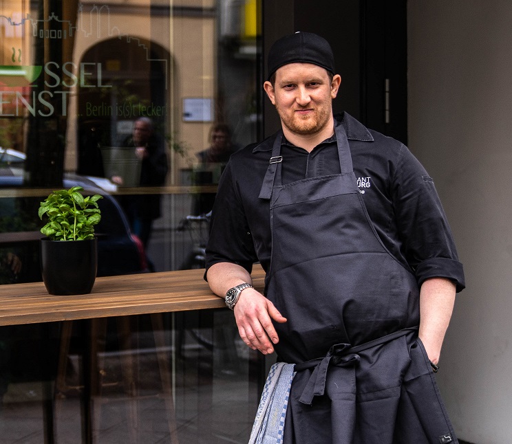 Was wie ein Paradoxon klingt, ist die zeitgemäße Art, Nachhaltigkeit und Hochgenuss ganz direkt auf den Tisch zu bringen. Der 34jährige Berliner möchte unkomplizierter arbeiten und dabei auch vergessenen Produkten eine Chance geben. So wird er zum Beispiel die Schulter dem Rücken des Rindes vorziehen oder nach dem Nose to Tail Prinzip mit Produkten überzeugen, die doch noch selten auf den Tellern gehobener Gastronomie landen.