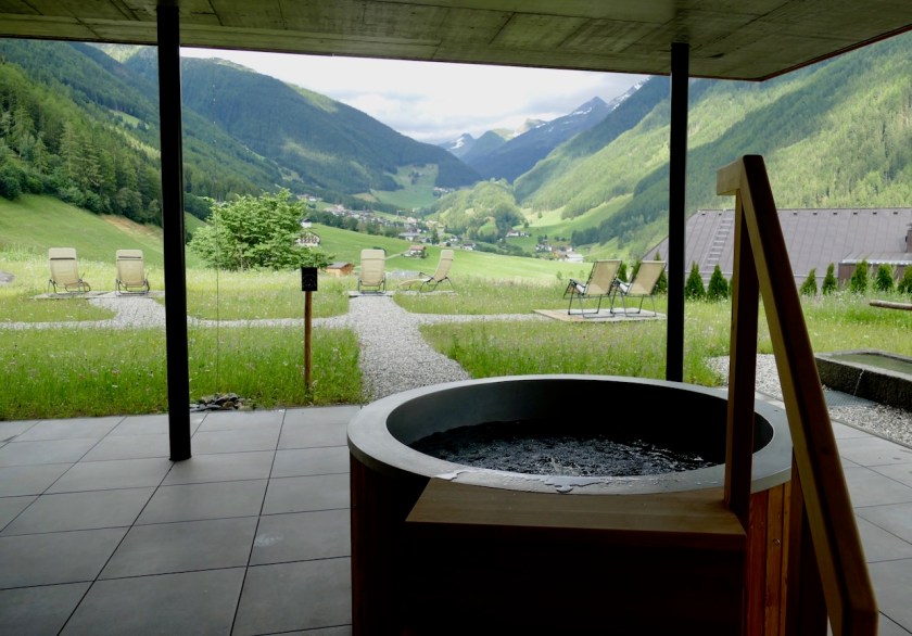 Dadurch, dass die Strassenbezeichnung auf Oberbühel 20 – 39030 St. Jakob geändert wurde, fand unser Navi die Adresse nicht. Aber kein Problem, von der Hauptstrasse aus ist das Hotel gut ausgeschildert und die markante Holz-Fassade oben auf dem Sonnenhügel, in unmittelbarer Nähe zur Kirche, gut sichtbar. Beim nächsten Navi-Update dürfte das behoben sein 😉