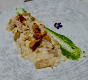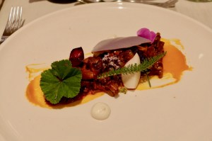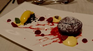 Bei der Anreise stellt man sein Wunschmenü aus 5 bis 7 Gängen zusammen. Wir haben uns z.B. für Risotto mit Pfifferlingen und Steinpilzen und Camembert in der Brotkruste mit gebratener Ananas entschieden. Als süße Verführung gab es Schokoladentörtchen mit halbflüssigem Kern, dazu frische Himbeeren vom Bauern aus der nahen Himbeerplantage und Tonkabohnen – zum Reinlegen lecker.