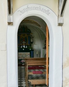 Dass der Hotelname „Ambet“ schon sehr alt ist und von der Geschichte der drei Jungfrauen stammt, hat uns Matthias bei einem Drink an der Bar erzählt und dass wir weitere Infos zur Namensgeberin in der Jungfrauenkapelle in der Dorfkirche finden.