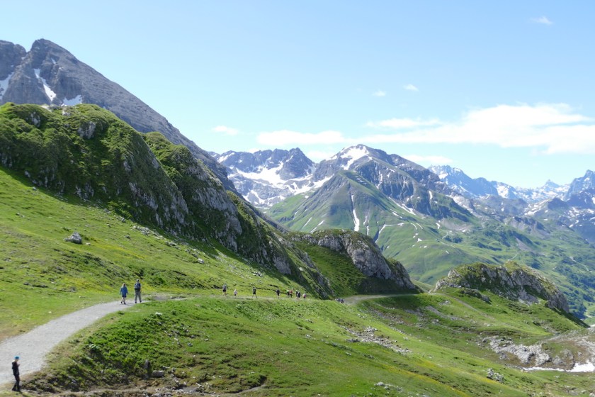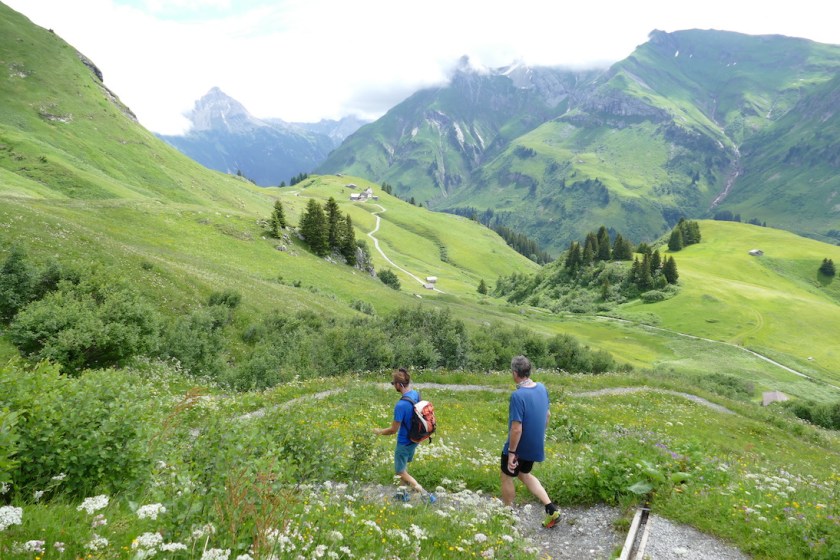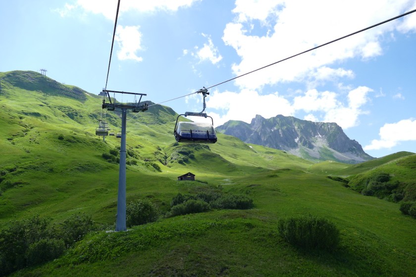 Mit der Gondel hinauf auf den Rüfikopf (2350 m) und dann weiter auf dem Alpweg z.B. zur Stuttgarter Hütte.