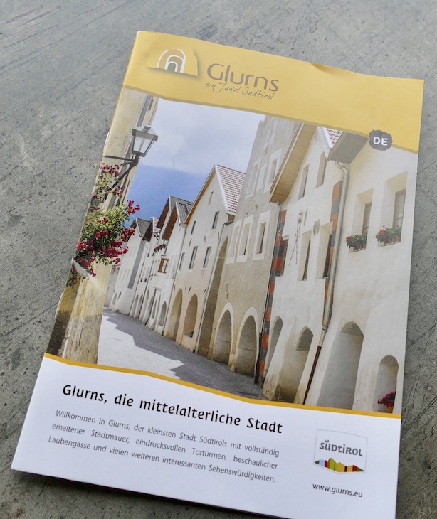 Beim Einchecken haben wir dieses Prospekt über Glurns erhalten mit dem Tipp, diese kleinste Stadt Südtirols mit einen noch vollständig erhaltenen Stadtmauer sollten wir uns unbedingt anschauen.