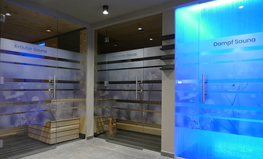 Ums Eck geht es zum Sauna-Bereich mit Dampfbad, finnischer Saune, Biosauna und Infrarotkabine. Erholsame Momente sind also garantiert, egale wie das Wetter draussen ist.