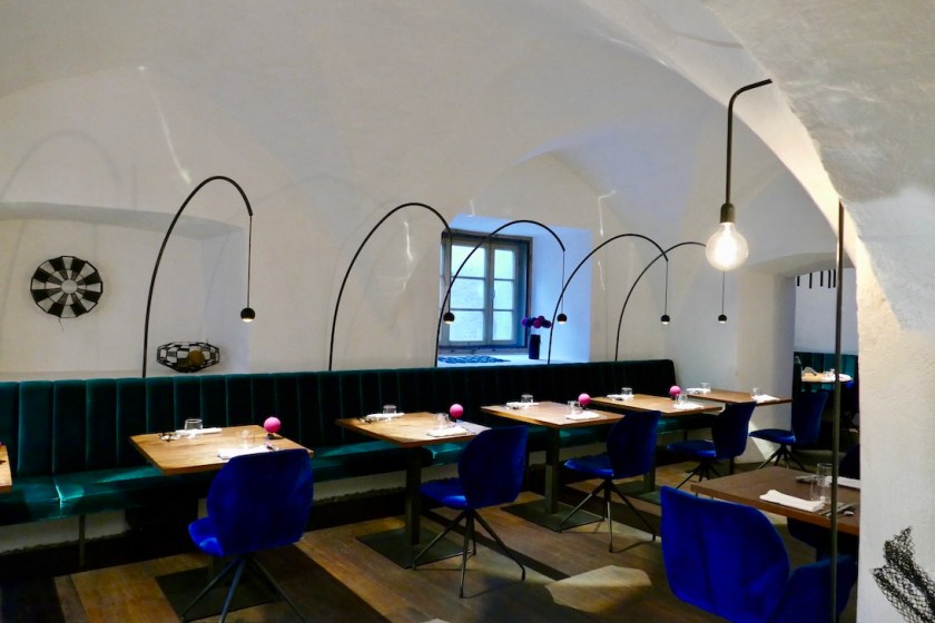 Das Restaurant flurin hat uns allein schon wegen der tollen Einrichtung in dem einzigartigen, historischen Ambiente überzeugt. Die Anrichten des Bestecks auf dem länglichen Stein – klasse. Und erst das Menü – sowas von lecker. Und dazu auch ein richtiger Augenschmaus.