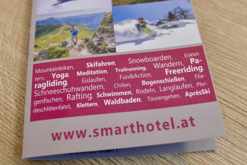 Das angebotene Wochenprogramm ist auf der Tafel hinter der Rezeption vermerkt. E-Bikeskann man sich direkt hier im Hotel ausleihen. Also “Let the smart begin”