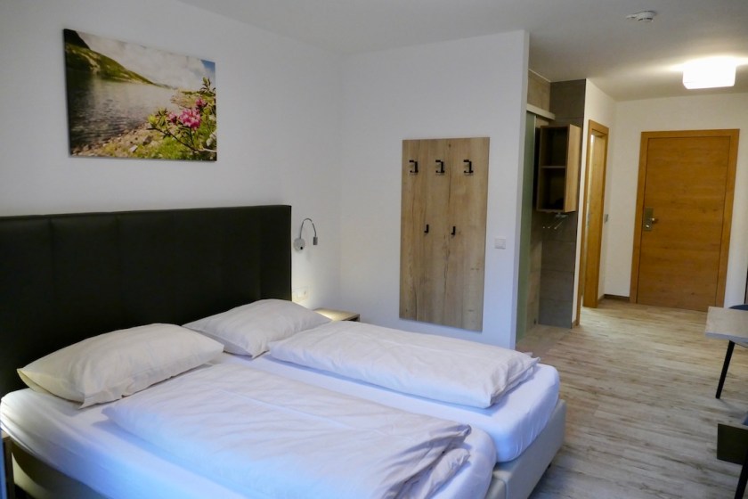 Unser smartRoom 204 ist eines der neu renovierten smartCOMFORT Zimmer im 2. Stock. Ein Eckzimmer mit herrlichem Blick auf die umliegenden Berge und was ich immer besondern gerne mag, vom Bett aus kann man den Sonnenaufgang genießen – klasse.