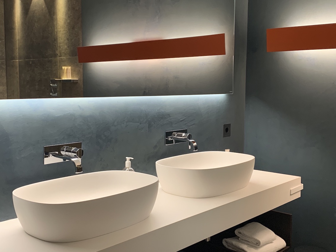 Kuschelig weiche Bademäntel und ein großzügiges Badezimmer vom italienischen Bad Designer Antonio Lupi.
