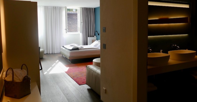 Die Beschreibung aus der Hotelmappe können wir voll unterschreiben: „Unser modernes Stadthaus wurde mit Herz und viel Feingefühl eingerichtet. Warme Töne, naturbelassene Steinmauern, edle Holzfussböden vermitteln Gemütlichkeit und ein ungezwungenes Gefühl von Luxus. Unser Suiten sind ein Heim auf Zeit, für all diejenige, die ein besonderes Ambiente schätzen“.