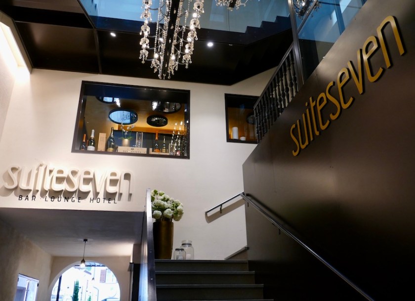 Die unmittelbare Nähe zum Ladengeschäft Siebenförcher und auch der Name suiteseven kommt nicht von ungefähr. Eigentümer des exklusiven Designhotels sind die Geschwister Siebenförcher.