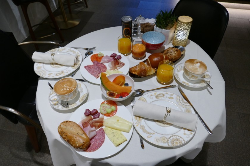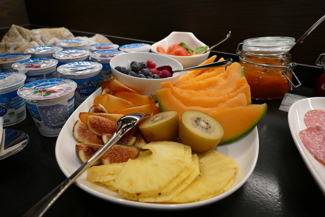 Es gibt alles was das Frühstücksherz begehrt, von frischen Früchten, Müsli und Joghurt, Wurst- und Käseauswahl, verschiedenen Brotsorten und Brötchen, hausgemachte Marmeladen bis zu frischen Säften und geschnippeltem Gemüse. Frühstücksperle Petra umsorgt ihre Gäste mit Kaffee in allen Variationen und füllt regelmäßig die Speisen auf.