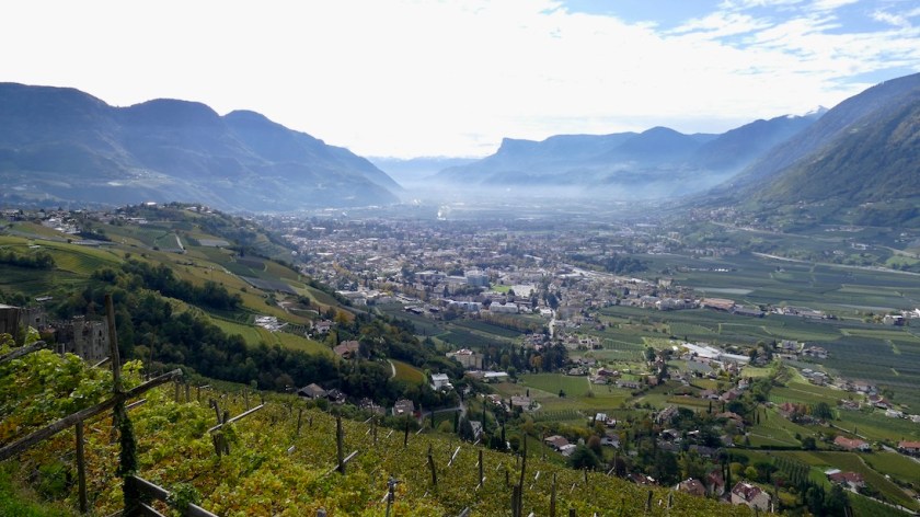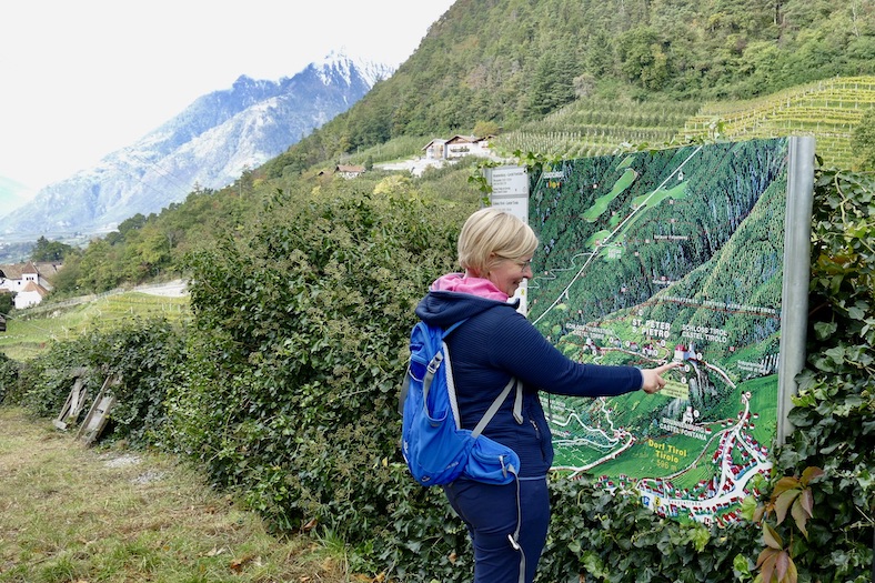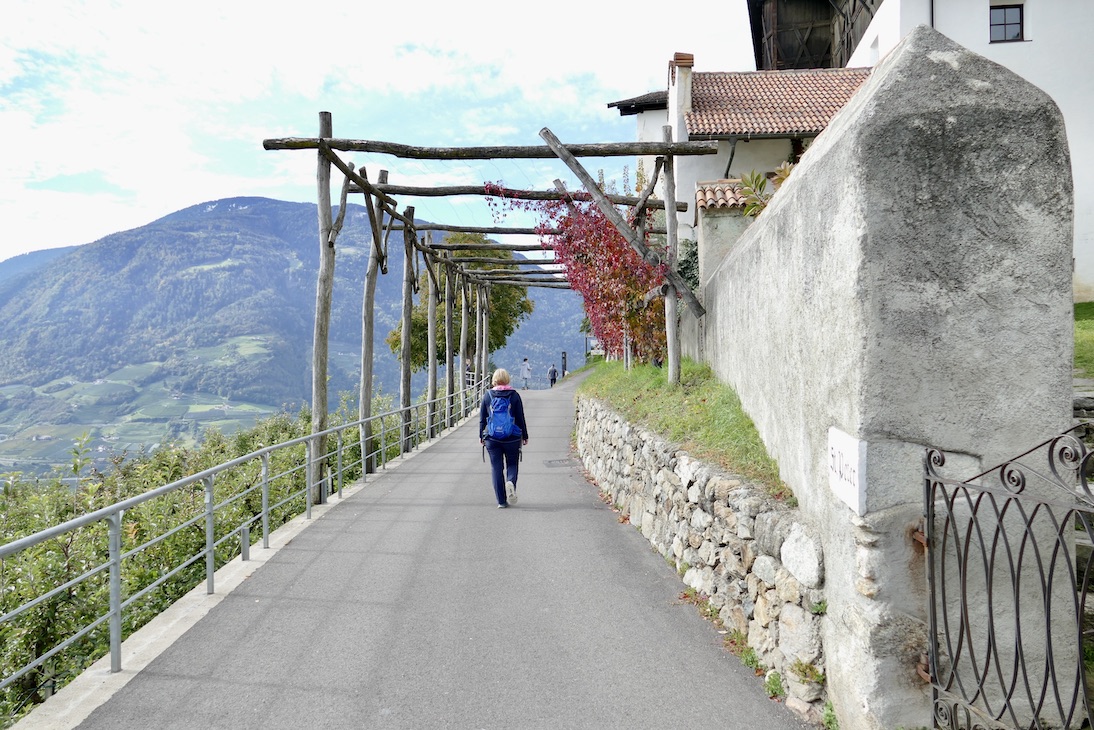 Der fast ebenerdige Panorama-Höhenweg ist gut 6 km lang und führt uns am Hang des Küchelbergs von Gratsch zurück ins Stadtzentrum von Meran.