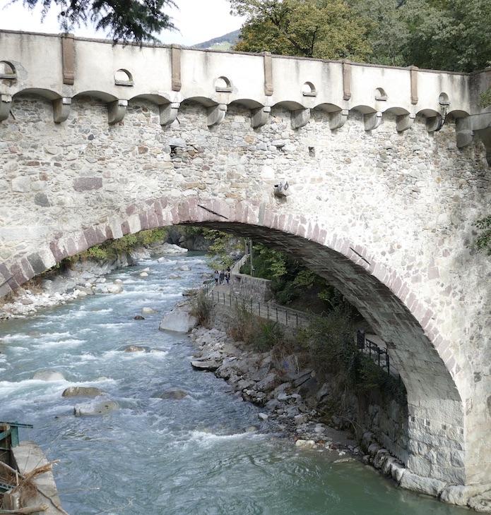 Von der Gilfklamm schlängelt sich der Promenadenweg durch eine Vielfalt mediterraner und exotischer Pflanzen zum Steinernen Steg, der imposanten Bogenbrücke, bis runter zur Passer.