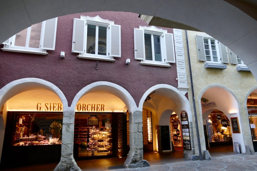 Nach einem Schaufensterbummel in der Sparkassenstrasse endet unser Rundweg wieder am Ausgangspunkt, den Meraner Lauben.
