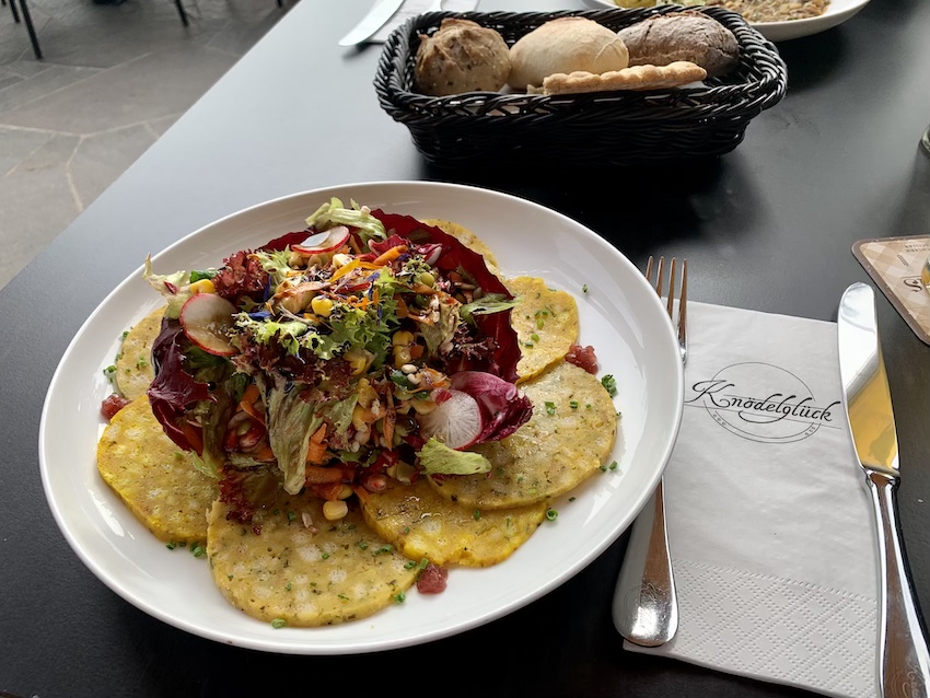 In Sichtweite des Pulverturms sind wir im Cafe-Restaurant Knödelglück eingekehrt. Das Wetter war traumhaft also ideal um draußen auf der Sonnenterrasse zu essen.
