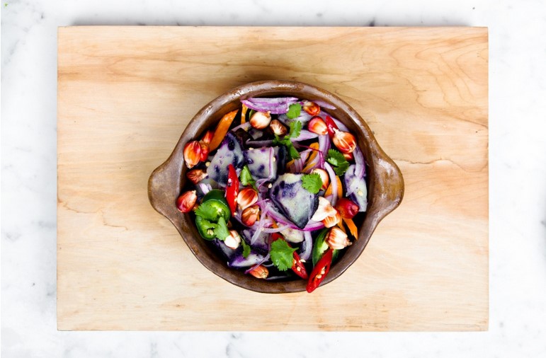 - Alle Zutaten für das Dressing miteinander vermengen und mit Salz und Pfeffer gut abschmecken