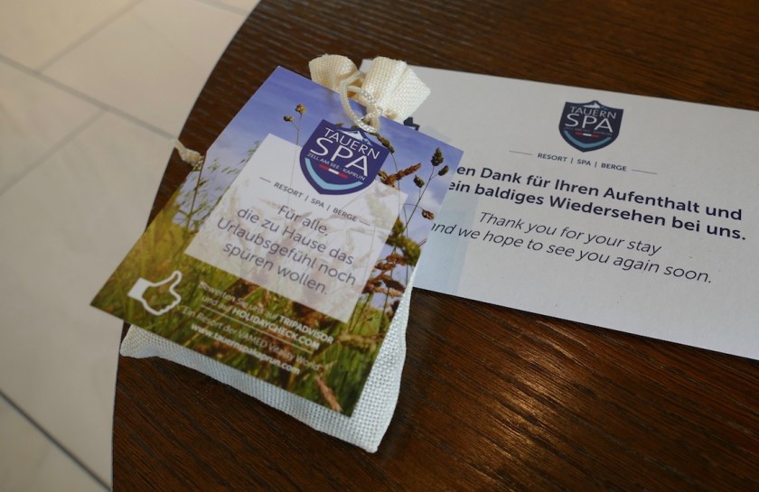 Als Mitbringsel für zu Hause haben wir ein herrlich duftendes Kräutersackerl erhalten. Auch hier passt der Text perfekt zum Geschenk. “Für alle, die zu Hause das Urlaubsgefühl noch spüren wollen”.