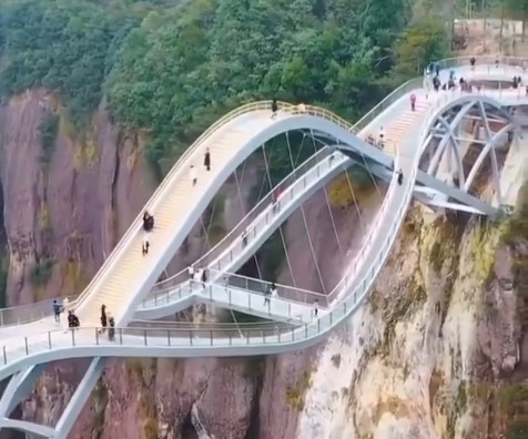 Auch nichts für Hasenfüße: Die Brücke ist 100 Meter lang und der gröte Teil hat einen Glasboden, sodass man den 300 Meter tiefen Abgrund sehen kann.