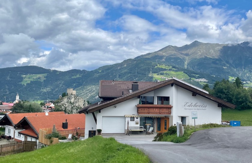Ausgestattet mit dem Hausschlüssel und allen nötigen Informationen starten wir zu unserem Alpinchalet Edelweiss am Ortsausgang, gleich gegenüber der Sonnenbahn Ladis-Fiss