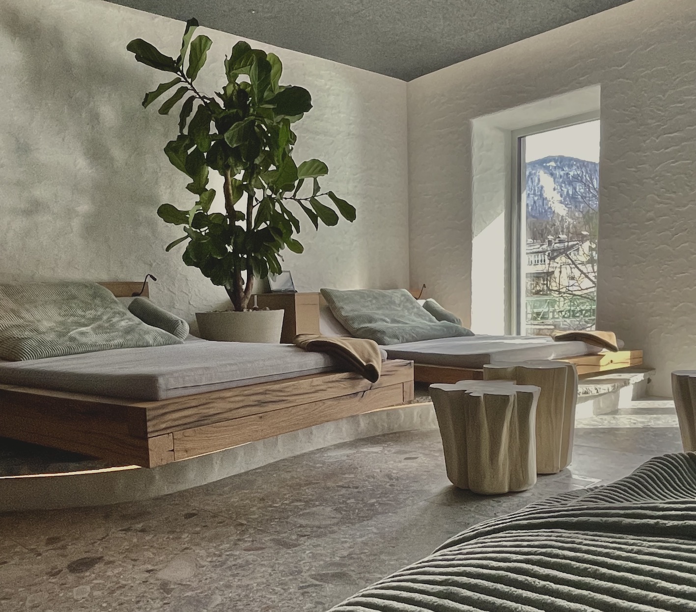 Beim Umbau wurden sechs Zimmer durch diesen chilligen Traun-SPA ersetzt. In der Wohlfühloase mit 200 Quadratmeter könnt ihr herrlich entspannen.
