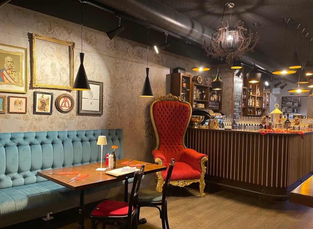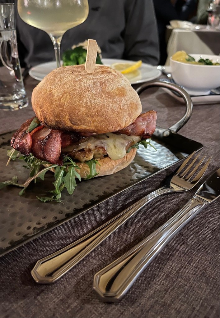 Regionale Küche und Schmankerl, serviert mit erlesenen Weinen. Hier haben wir z.B. den Alpenburger mit Kaspressknödel-Paddy, Schwammerl und Bergkäse genossen und eine moderne Interpretation eines Bienenstichs.