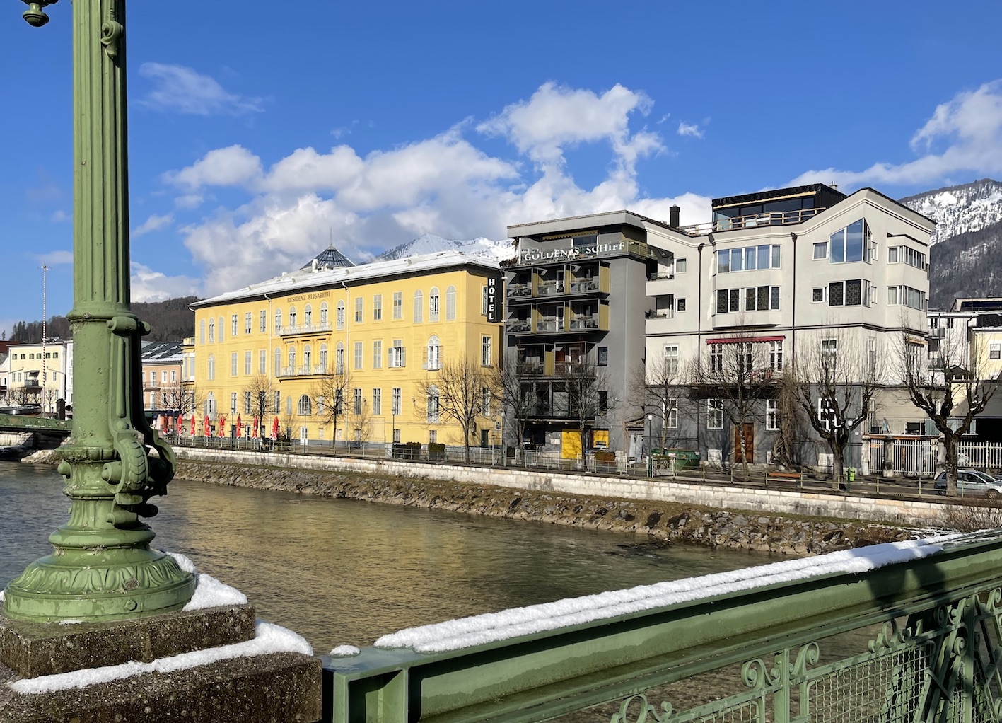Das Stadthotel Goldenes Schiff liegt traumhaft direkt am Ufer der Traun mit herrlichem Blick auf den Hausberg Katrin und den Siriuskogel.