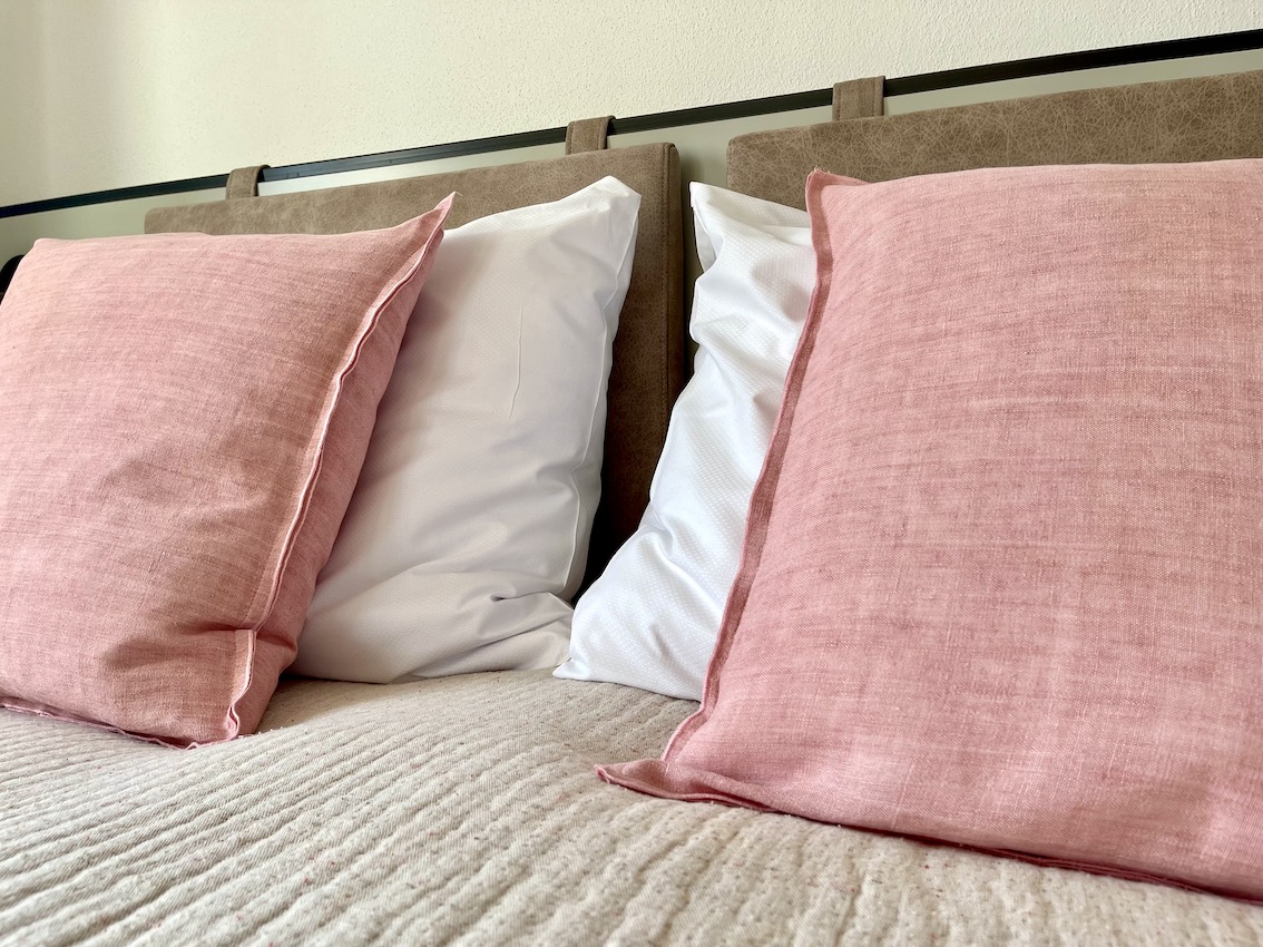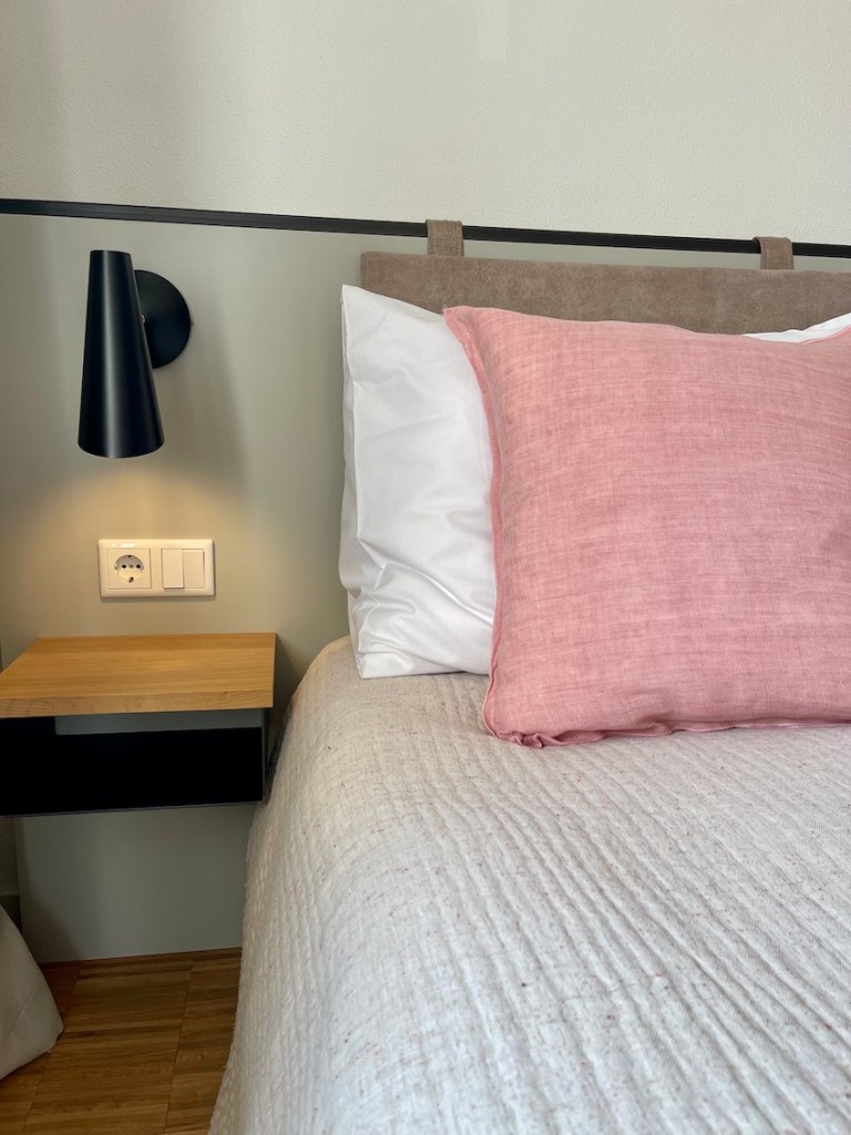 Super bequeme Betten, tolle Materialen und ruhige, harmonische Farben.