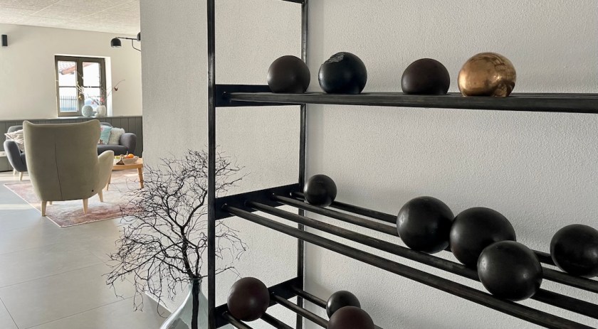 Im Haus verteilt findet ihr immer wieder besondere Kunst-Stücke, wie hier die Weiterführung der Kugel-Skulpturen draußen vor dem Haus – ein Teil vom Skulpturenweg Wörthsee.