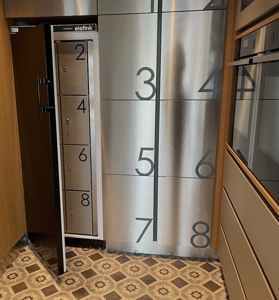 Jedem Quartier steht ein absperrbares Fach im Kühlschrank und ein Trockenlager zur Verfügung. Wer es noch nicht vorab zum Einkaufen geschafft hat, bedient sich last-last-minute, wenn der kleine Hunger kommt, an der feinen Auswahl an Lieblingsprodukten, wie italienischen Nudeln, Tomatensauce, Eier, Wein, Feierabendbier … im offenen Regal oder Kühlschrank.