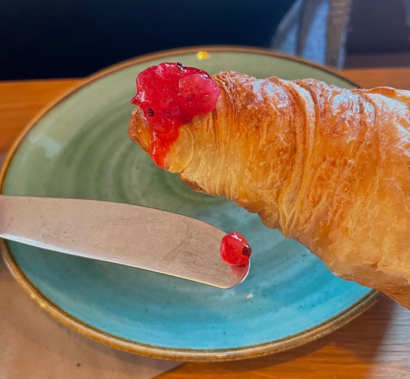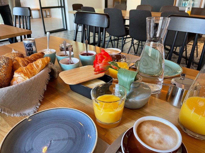 Dazu frische Brötchen und Croissants. Alles weitere für euer persönliches Genussfrühstück besorgt ihr euch entweder selbst bzw. bedient euch im Regal oder Kühlschrank.