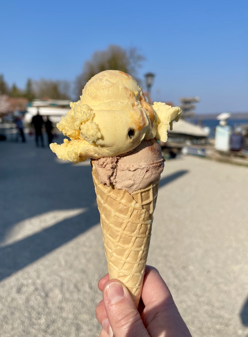 Gleich neben dem Cafe- Restaurant -Bar „Lenas am See“ könnt ihr euch am selbigen Kiosk ein leckeres Eis oder einen Aperol holen und direkt am See genießen. https://www.lenasamsee.de