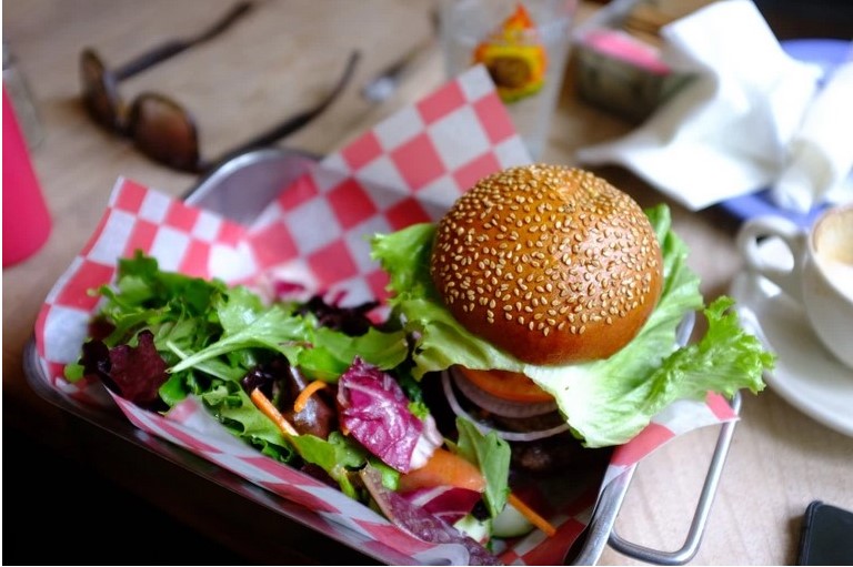 Burger mit Fleisch? Auf keinen Fall. Stattdessen gibt es Auberginen Burger mit rote Bete.