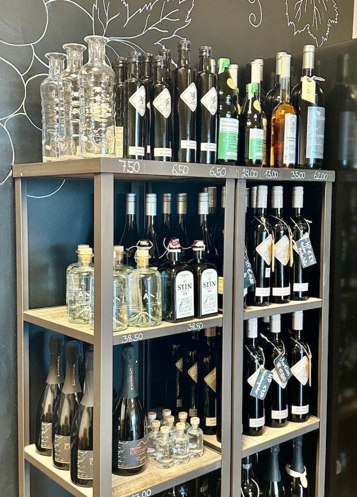 In der größten Vinothek der Südsteiermark gibt es nicht nur ausgezeichnete Weine, Raritäten und Großflaschen, sondern auch Käse, Marmeladen, Essig, Öl, Geschenke und vieles mehr bis hin zu Edelbränden, Whisky und Gin.