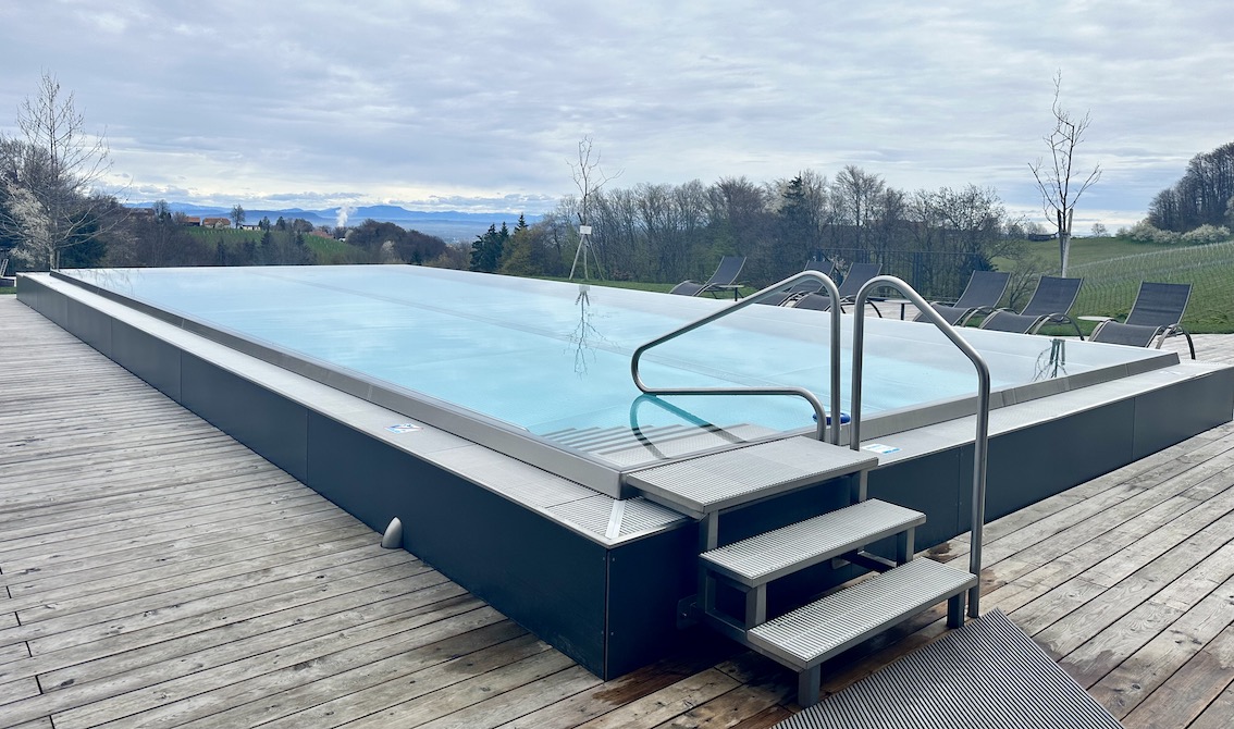 Direkt über dem Infinitypool mit grandioser Aussicht befindet sich unser großzügiges Panoramazimmer mit 35 m2.