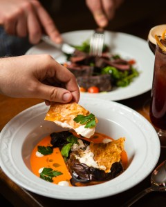 So wird Caponata mit eingelegter Zitrone und Petersilienöl auf Burrata aus Brandenburg serviert. Pastinakensuppe bekommt einen knackigen Twist durch Senfsamen, Apfel und Pancetta und Rotwein-Ravioli werden mit Osscobucofüllung und Parmensansauce zu echtem Italian Comfort Food. Außerdem finden sich Wintergerichte wie Trüffel-Tagliatelle oder ein Hirschfilet mit Kirschjus und Topinamburpüree auf der wechselnden Karte.