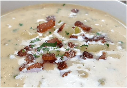 Clam Chowder ist eine dicke, cremige Suppe, die hauptsächlich aus Muscheln (in der Regel Quahog-Muscheln), Kartoffeln, Zwiebeln und Sellerie besteht.