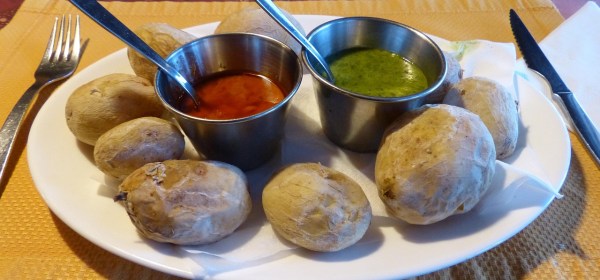 Ich hätte mich reinlegen können! Baguette oder Papas Arrugadas (spanische Salzkartoffeln) und Mojo Rojo – und ich bin zufrieden. Dazu ein leckerer Rotwein, und der