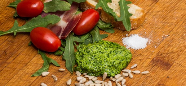 Am Wochenende wollen wir snacken, lecker und erfrischend soll es sein. Habt ihr eine Idee? Jaaaa! Frisches Basilikum, nussige Pinienkerne, würziger Parmesan und hochwertiges Olivenöl